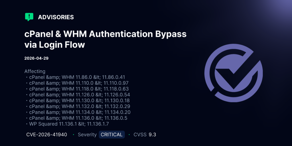 Chi tiết Quý khách có thể xem thêm tại https://support.cpanel.net/hc/en-us/articles/40073787579671-Security-CVE-2026-41940-cPanel-WHM-WP2-Security-Update-04-28-2026