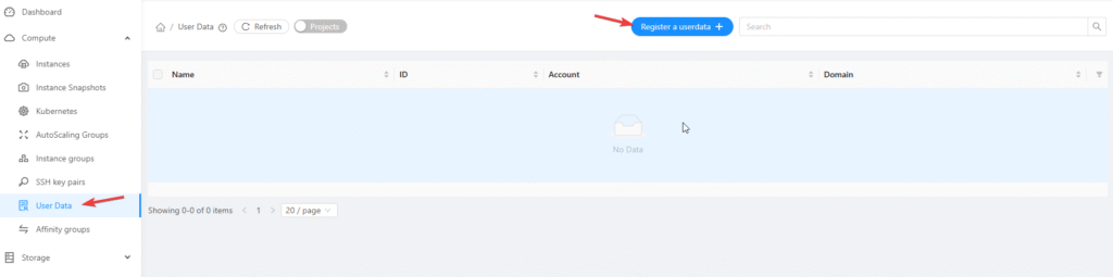 Bước 2: Trong thanh điều hướng bên trái, nhấp vào Compute → User Data Library.