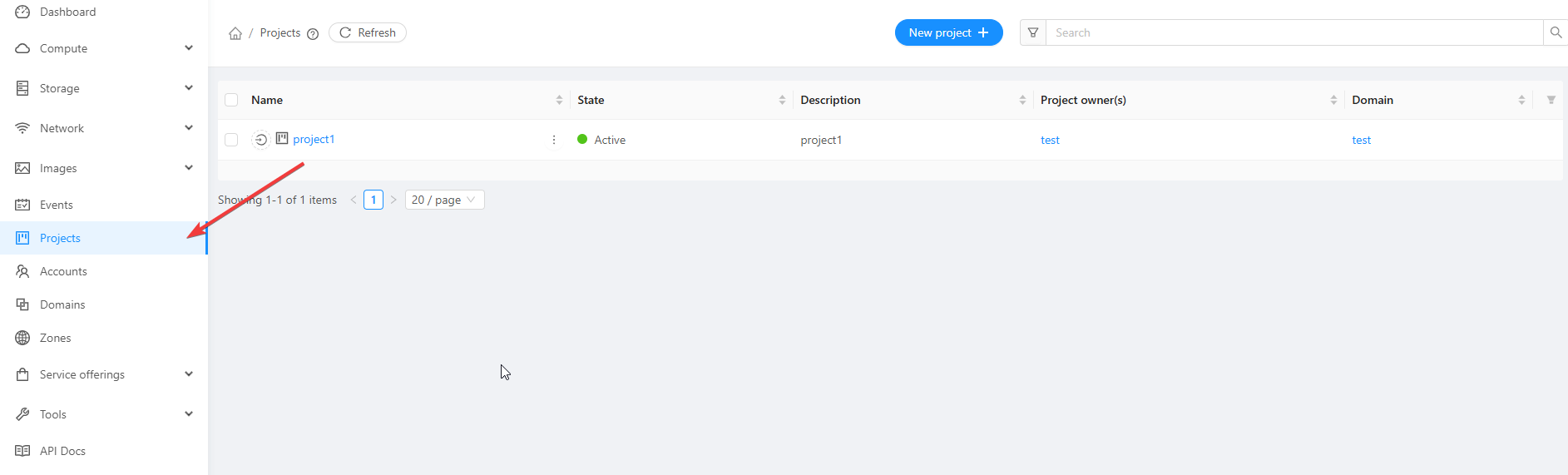 Project là một cách để sắp xếp các account và tài nguyên. Users (accounts) có thể tự nhóm mình thành các dự án để họ có thể chia sẻ các tài nguyên như instances, snapshots, templates, data disks, và địa chỉ IP. Tài nguyên được tạo trong project chỉ thuộc về project đó, không thuộc về account và chỉ được sử dụng trong phạm vi project ấy