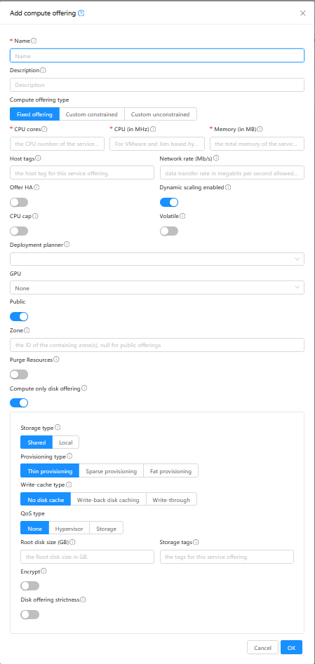Nhấp Add compute offering +, nội dung Add compute offering xuất hiện.