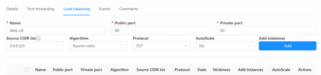 Ở mục Load Balancing ta cấu hình như sau:
