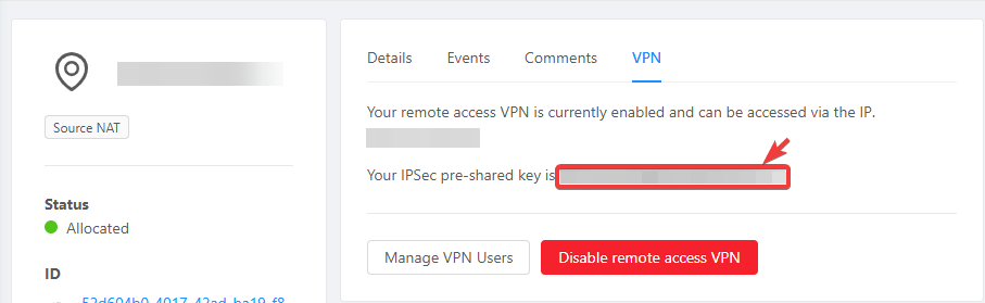 - Pre-shared key: (lấy trong phần cấu hình VPN của Cloud Gen 4)