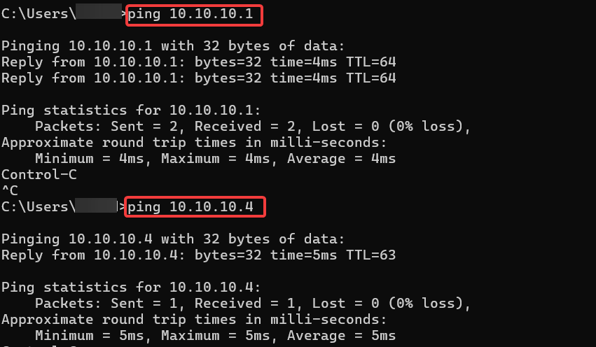 Bước 7: Ping thử tới gateway (10.10.10.1) và VM ở trong (10.10.10.4)