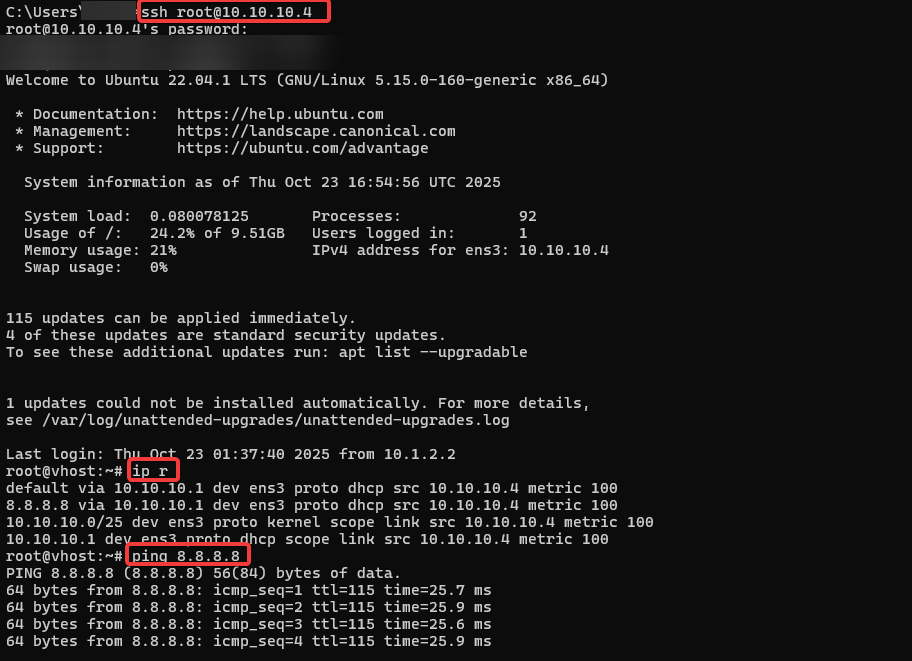 Bước 8: SSH vào VM và ping ra Internet