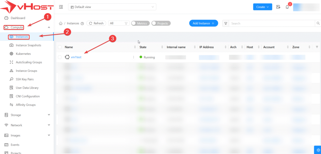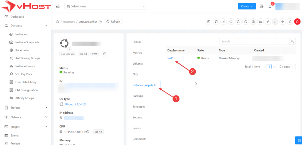 - Bước 2: Chọn vào Instance cần thực hiện snapshot
