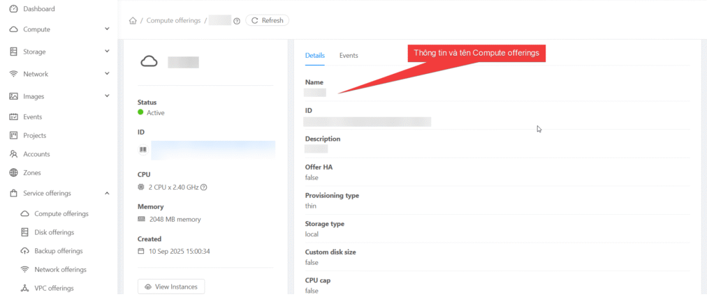 - Compute offerings: Gói tài nguyên phần cứng cho VM (số CPU, RAM, disk).
