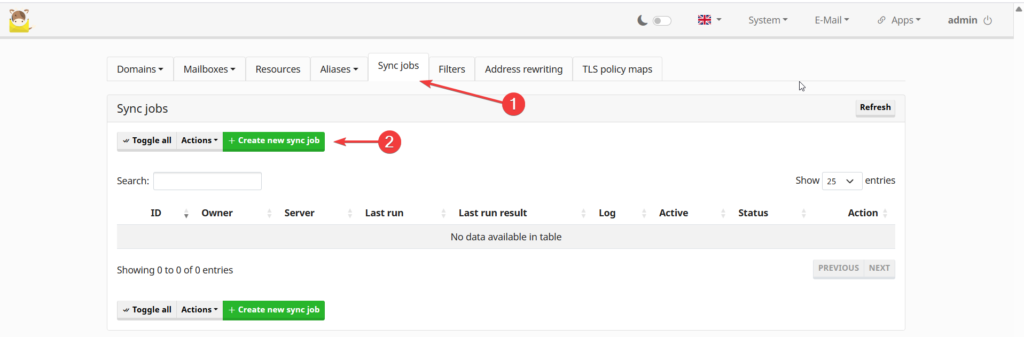 B1: Tại giao diện quản trị webmail, Quý Khách truy cập vào mục Sync jobs: