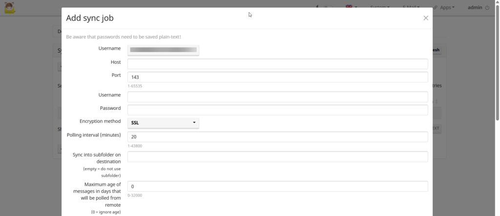 Sau khi Quý Khách nhấn Create new sync job, giao diện Add sync job sẽ hiển thị để Quý Khách có thể cấu hình chuyển data email.