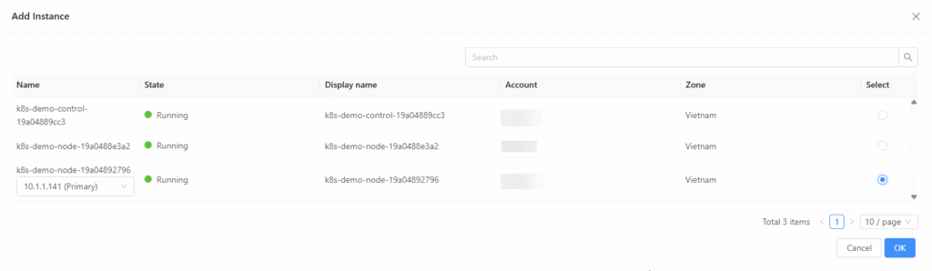 Sau khi cấu hình Port forwarding, Quý khách đã có thể truy cập vào Instance trong cụm Kubernetes của mình bằng IP Public và Port forwarding.