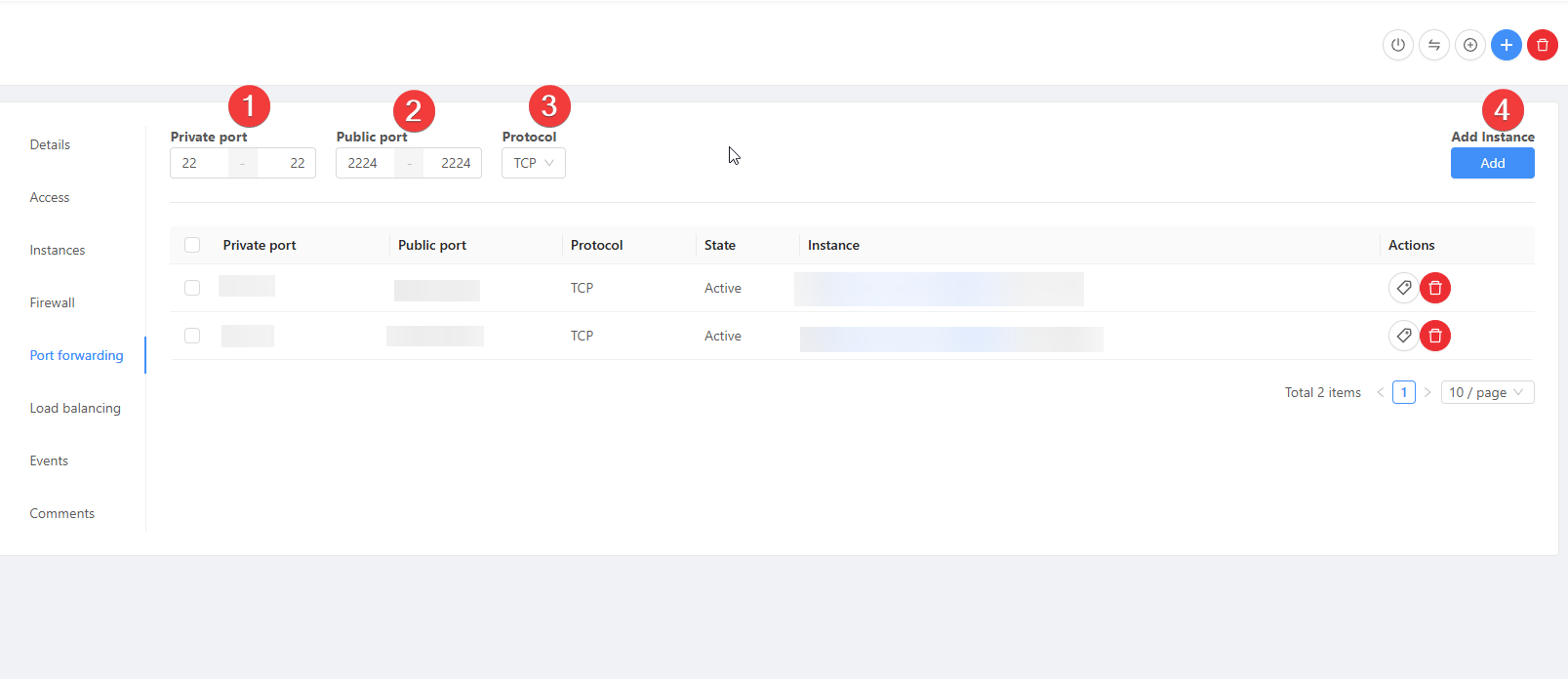 Sau đó thì Quý khách sẽ cần chọn Instance mà Quý khách muốn cấu hình cho phần Port forwarding.