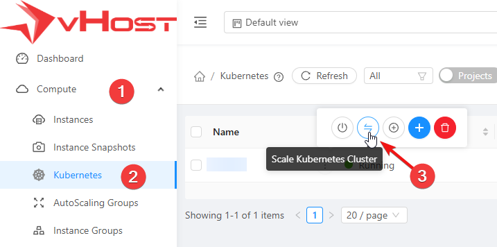Sau khi tạo cụm K8S trên Cloud Gen 4, Quý Khách có thể chọn Scale Up hoặc Down các node thủ công bằng cách chọn Compute > Kubernetes > chọn cụm K8S Quý Khách muốn Scale và chọn Scale Kubenernetes Cluster.