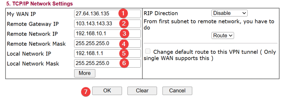 - Địa chỉ mạng nội bộ ở 2 chi nhánh phải khác lớp mạng nhau. Ví dụ ở phía DrayTek sẽ dùng range 192.168.1.0/24, và ở phía VPC sẽ đặt là 192.168.10.0/24
