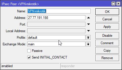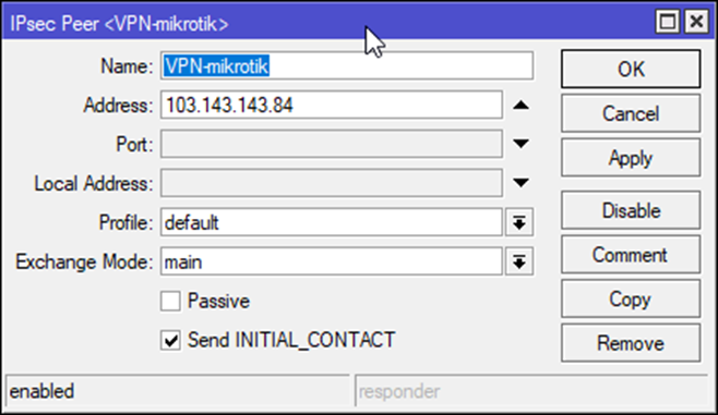 - Khởi tạo IPSec Peer từ Site 1 đến Site 2, phần Address nhập IP Public của Site 1